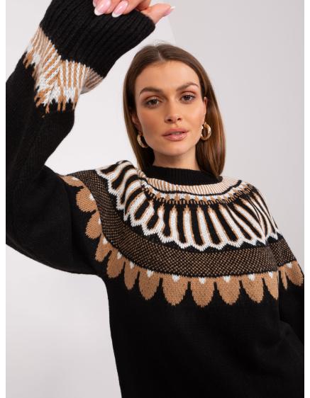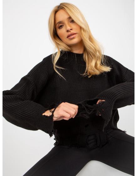 Dámsky sveter so stojacím golierom RUE PARIS čierny