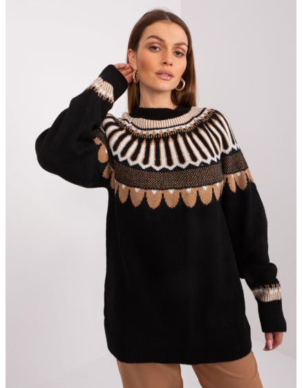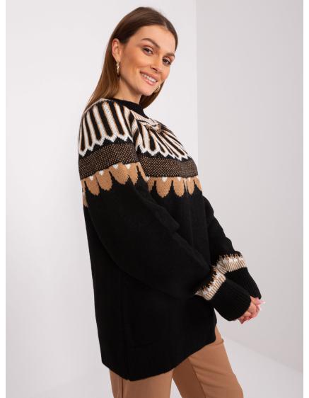 Dámsky sveter s vreckami RUE PARIS čierno-béžový