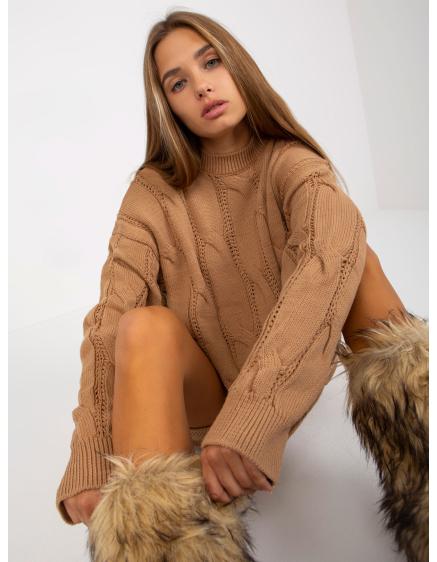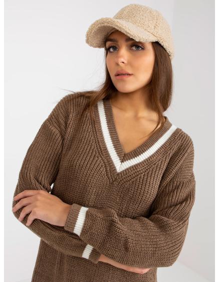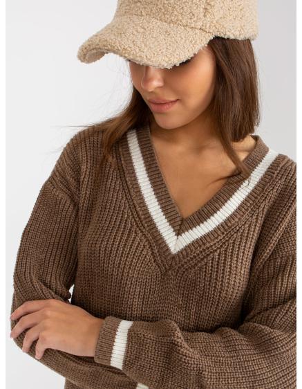 Dámsky sveter s výstrihom do V RUE PARIS hnedý