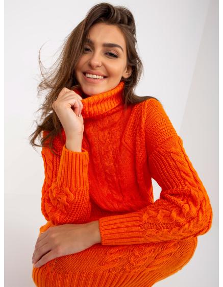 Dámsky sveter mini kockovaný pletený RUE PARIS oranžové