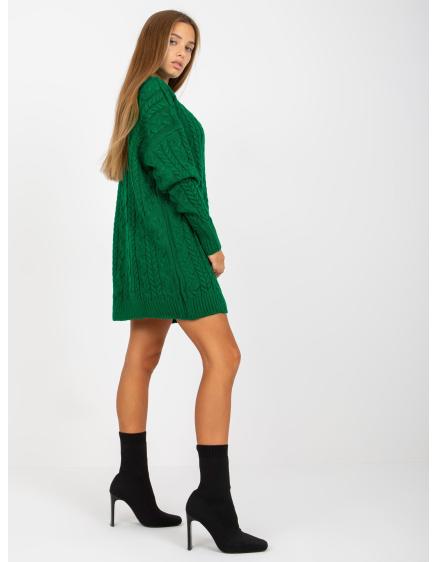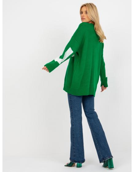 Dámsky sveter s kockami oversize strihu RUE PARIS zelený