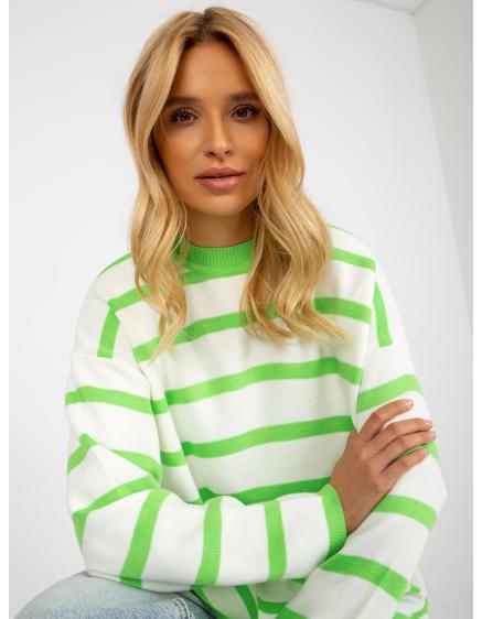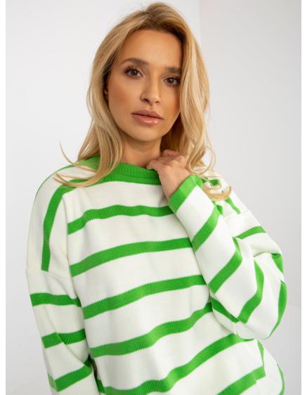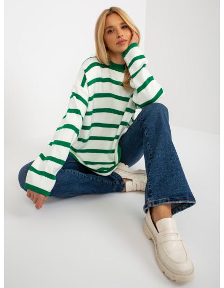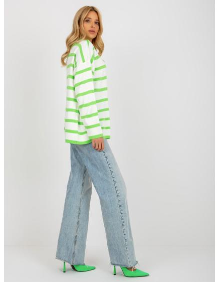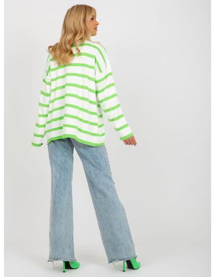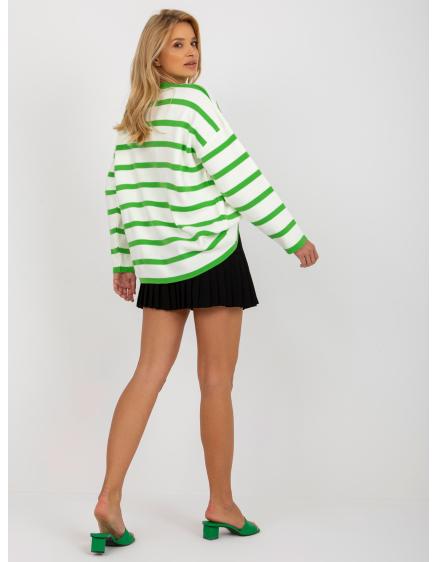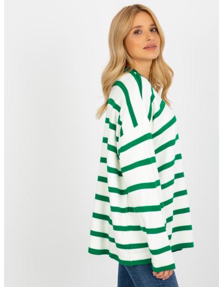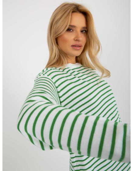 Dámsky sveter RUE PARIS pruhovaný bielo-zelený