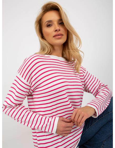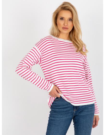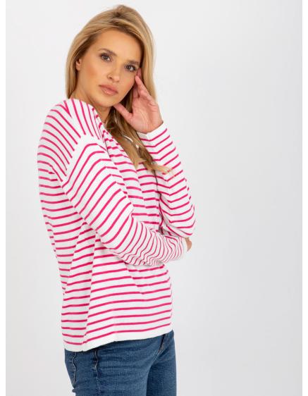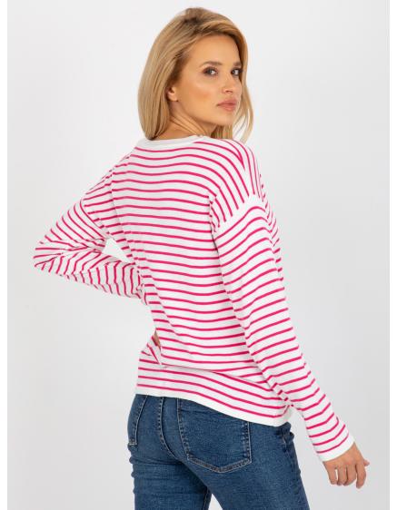 Dámsky sveter s pruhmi RUE PARIS bielo ružový