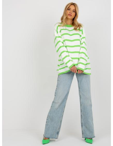 Dámsky sveter pruhovaný oversize RUE PARIS svetlo zelený a ecru