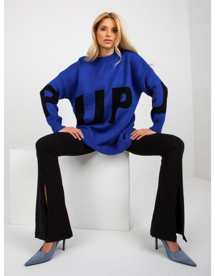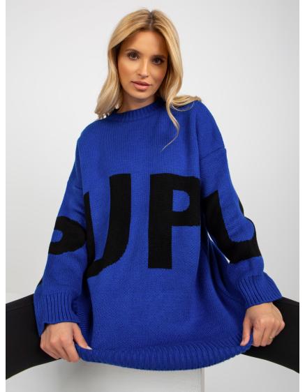 Dámsky sveter s nápisom oversize RUE PARIS kobaltový