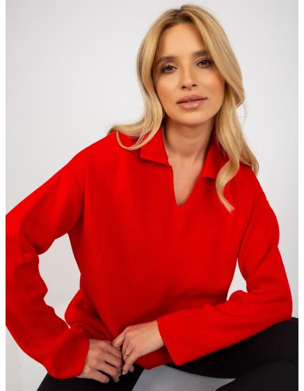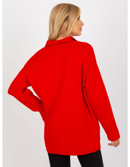 Dámsky sveter s golierom oversize RUE PARIS červený