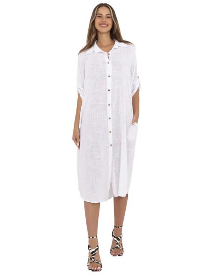 Biele bavlnené šaty bez zipsu OCH BELLA