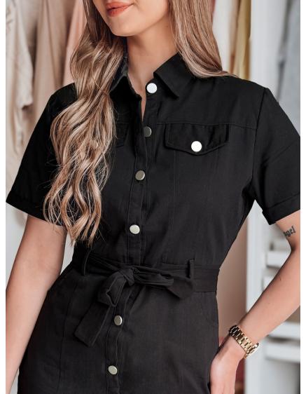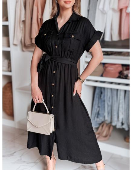 Čierne košeľové šaty s 3/4 rukávmi OCH BELLA