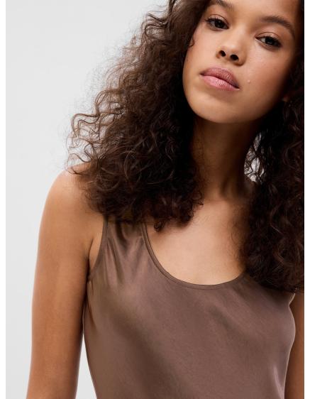 Mušelínové šaty na ramienka hnedé