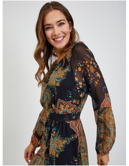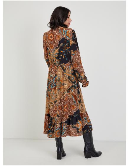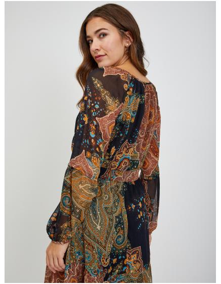 Hnedé dámske vzorované midi šaty