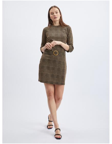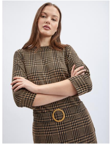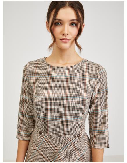 Hnedé dámske kockované šaty