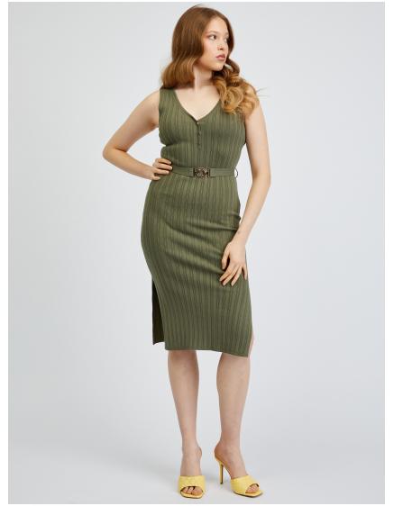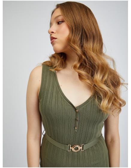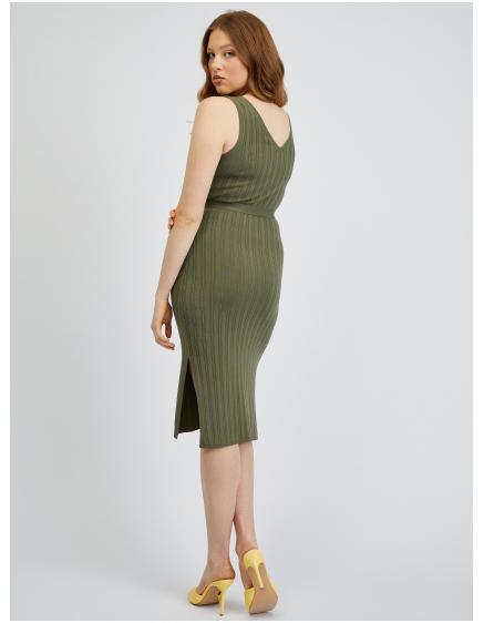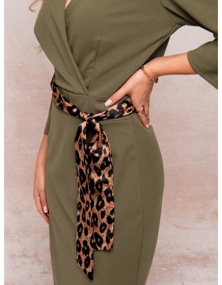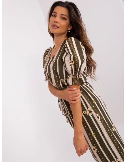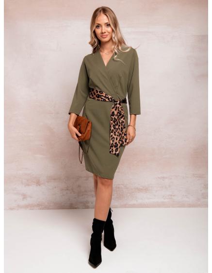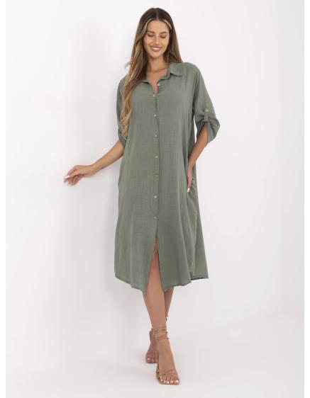 Khaki letné šaty s 3/4 rukávmi OCH BELLA