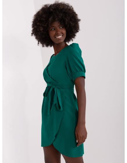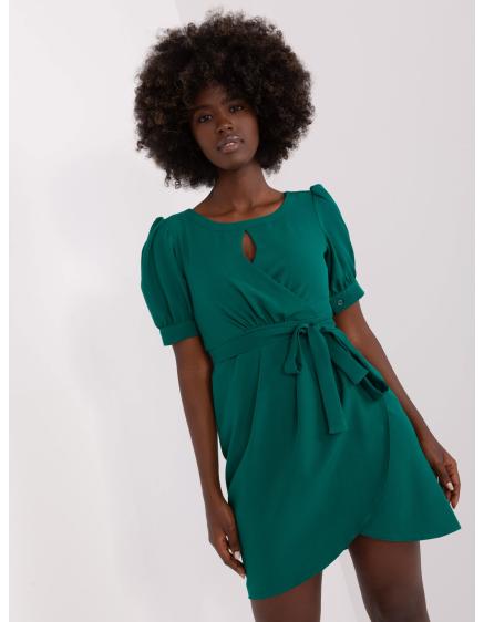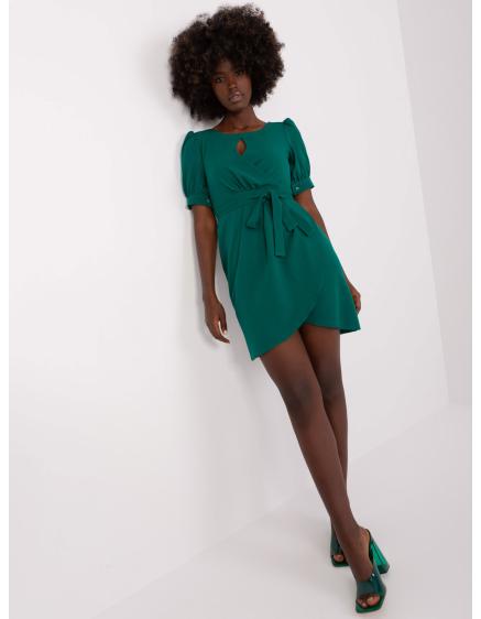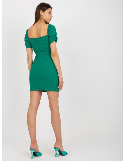 Dámske šaty s krátkymi rukávmi mini koktailové RIZIA tmavo zelené