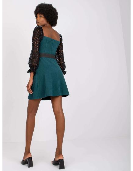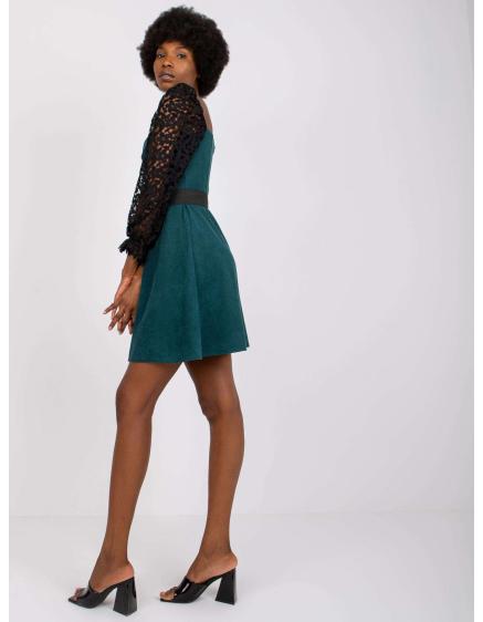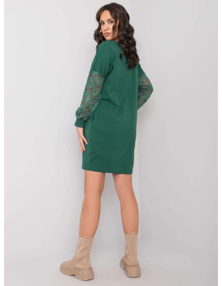 Dámske šaty s čipkovanými rukávmi Alexxie RUE PARIS tmavozelené