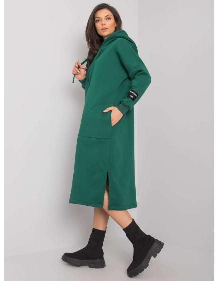 Dámske šaty s kapucňou teplákovej ANGIE tmavo zelené