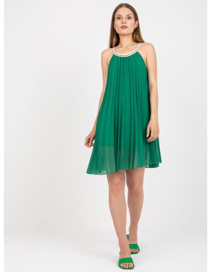 Dámske mini šaty na ramienka AMELINE tmavozelené