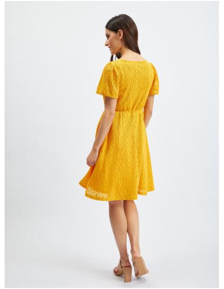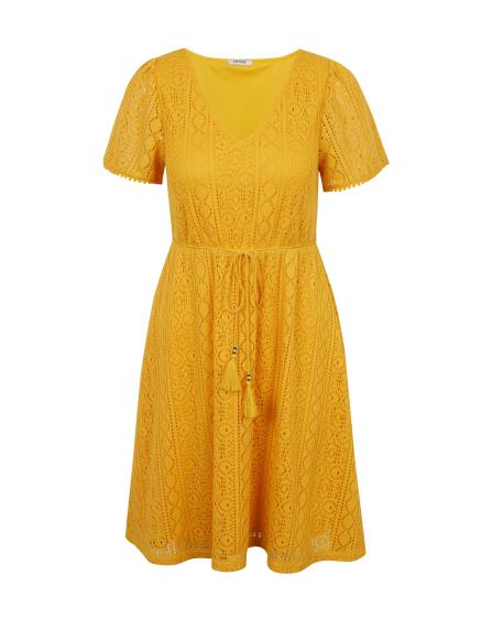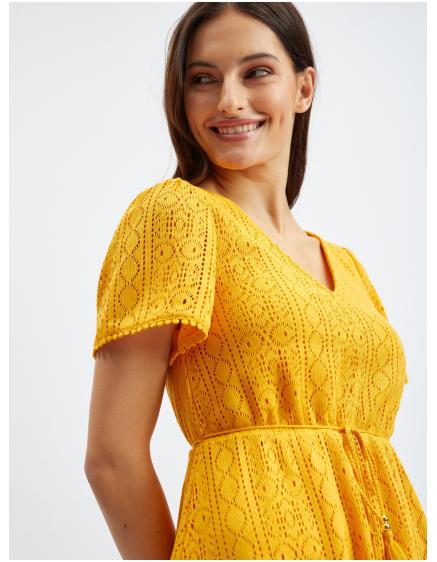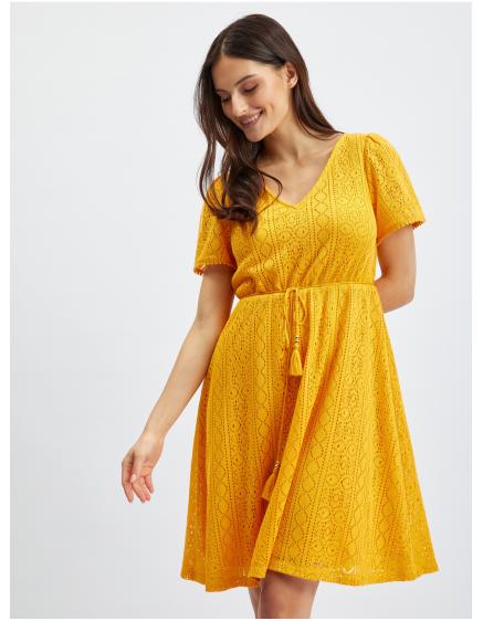 Svetložlté mušelínové šaty bez ramienok OCH BELLA