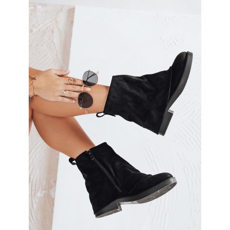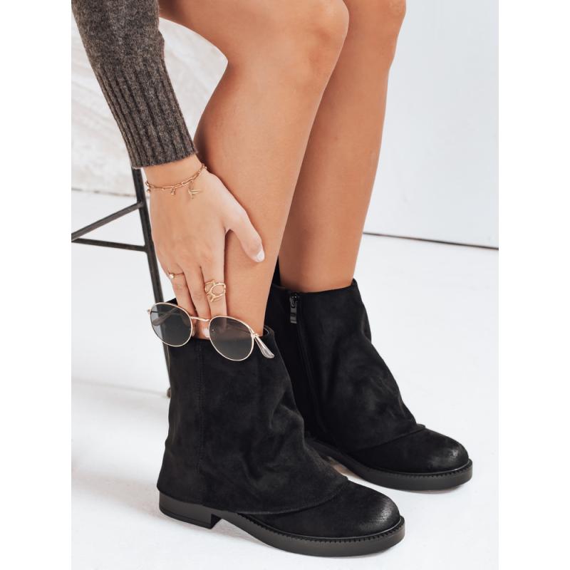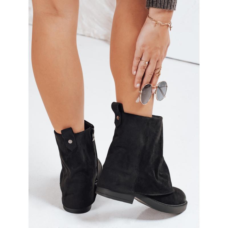 Dámske semišové členkové topánky s vyhrnutým zvrškom, čierne