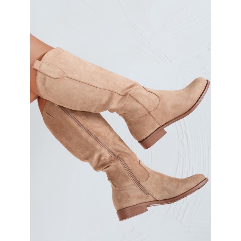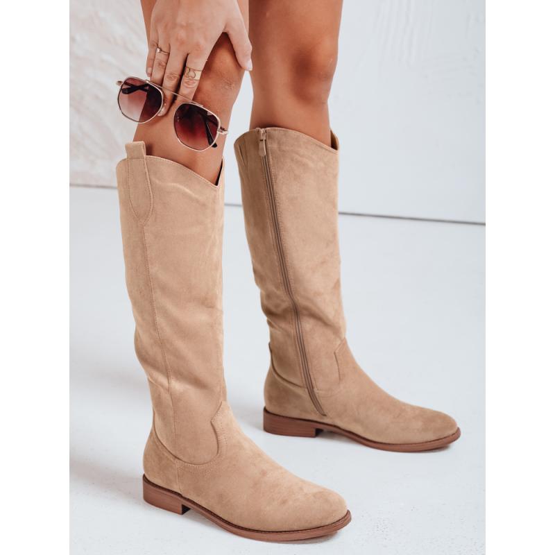 Dámske semišové kovbojské topánky, béžové