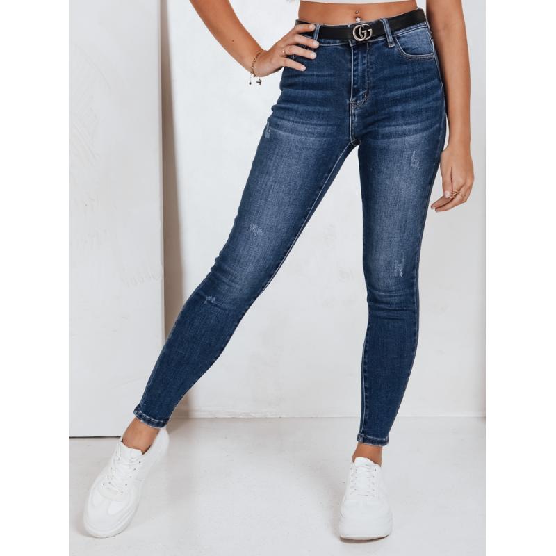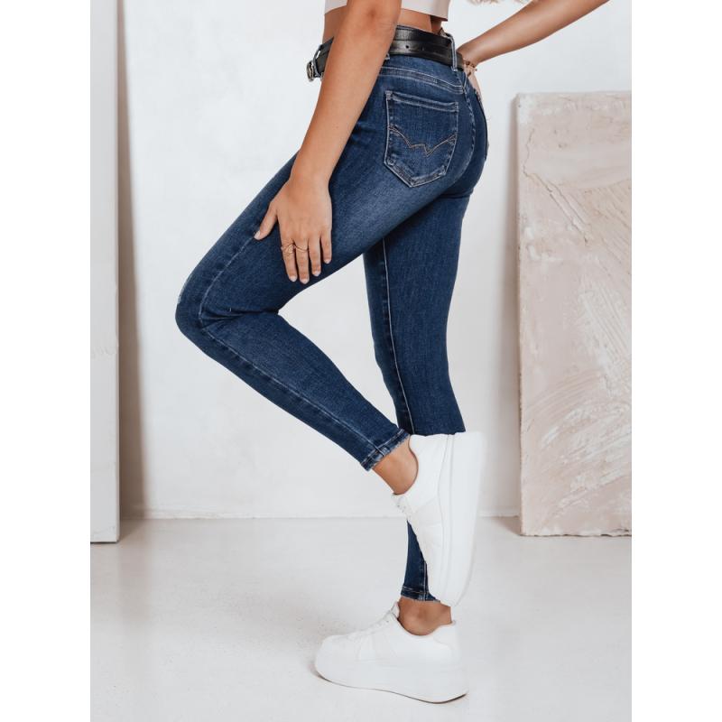 Dámske skinny džínsy s vysokým pásom, tmavo modré