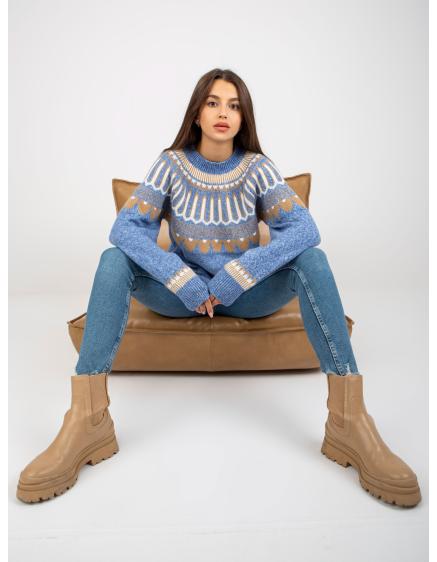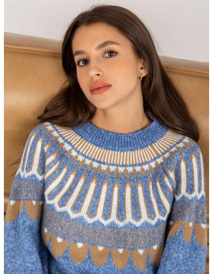 Dámsky sveter s golierom oversize RUE PARIS modrý