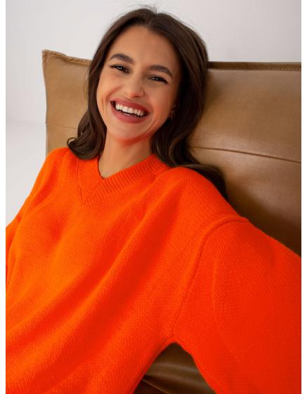 Dámsky sveter oversize pletený RUE PARIS oranžový