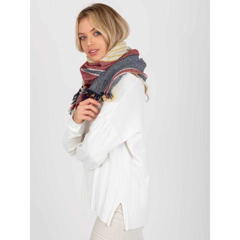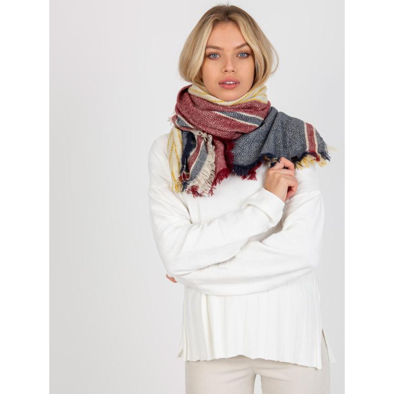 Dámská šála vzorovaná zimní MIAKELA s vlnou námořnicky červená