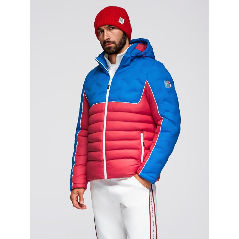 Dlhá prešívaná pánska bunda s kapucňou – sivá V2 OM-JALJ-0264