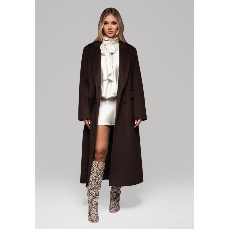 Dlhý dámsky vlnený kabát LARICA OW-COLC-0100 v2 – hnedý