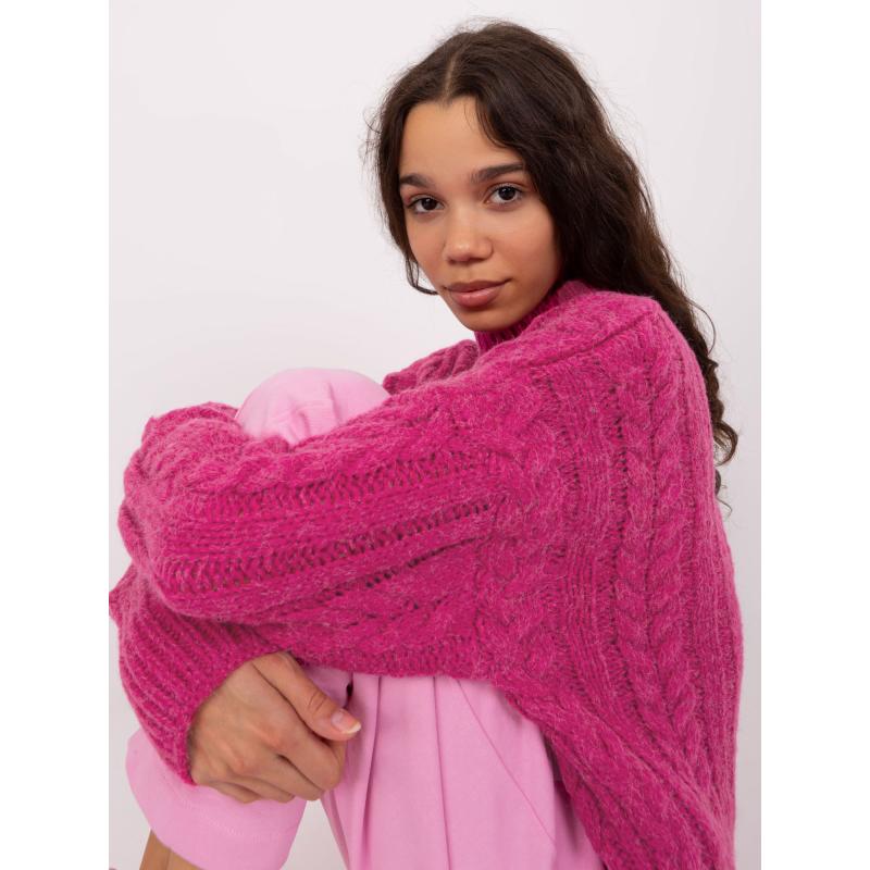 Fuchsiový dámsky sveter vo veľkej veľkosti s voľným rolákom