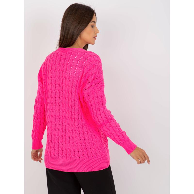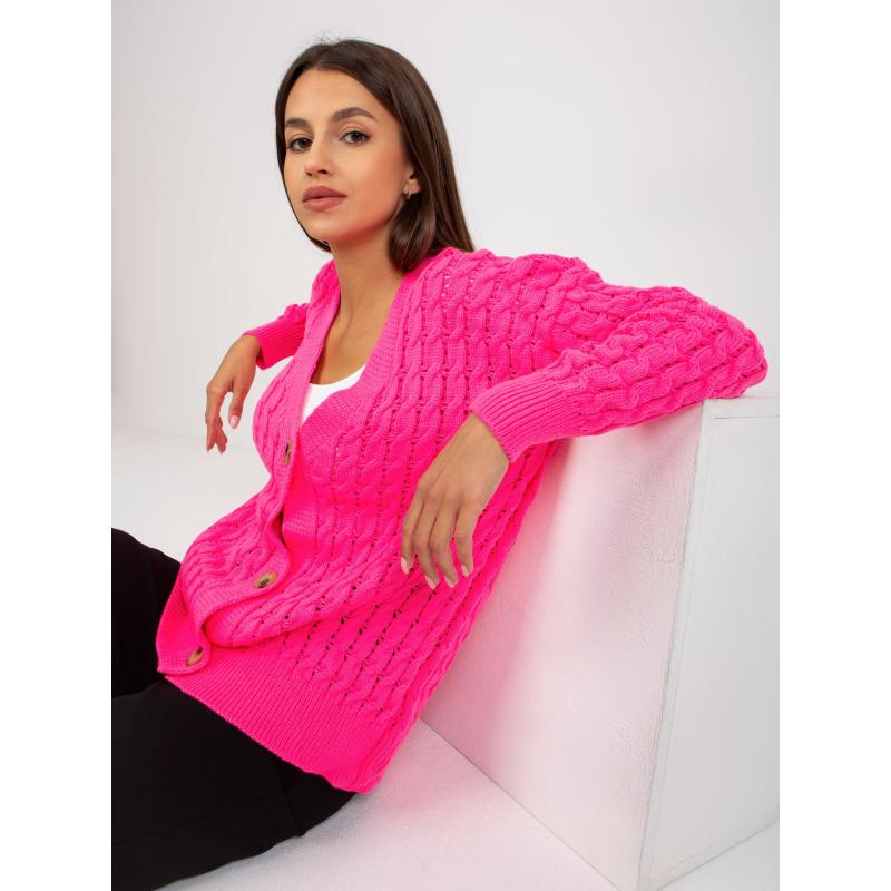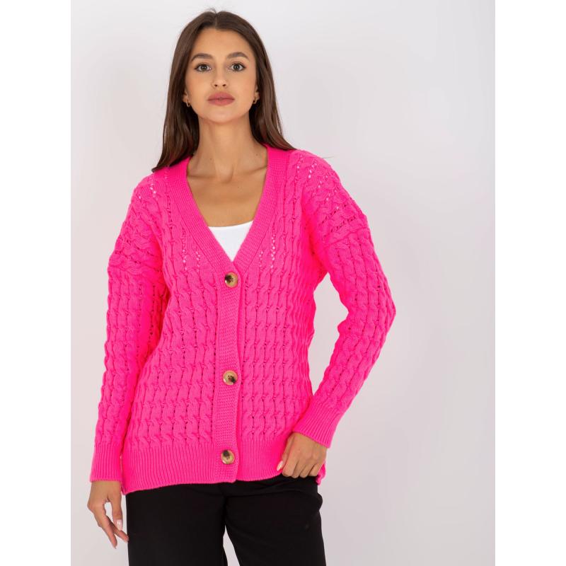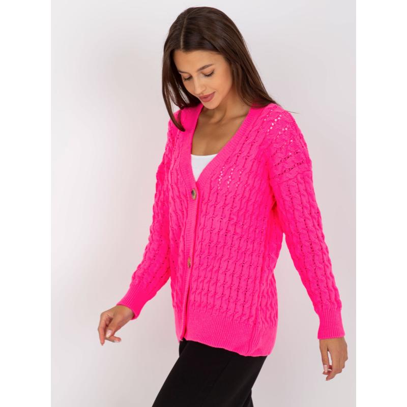 Fluorescenčný ružový prešívaný sveter s gombíkmi RUE PARIS