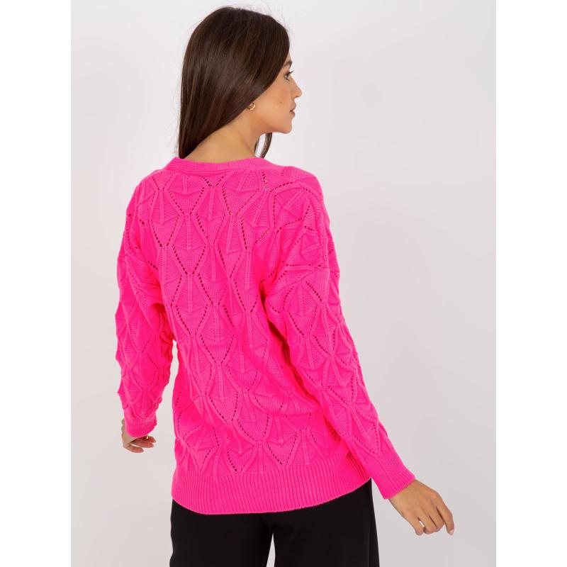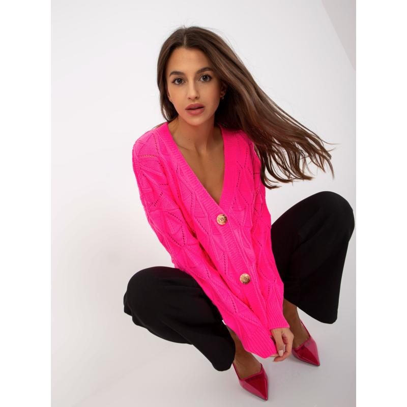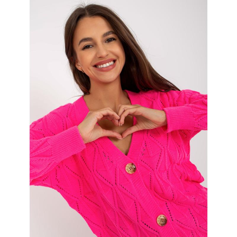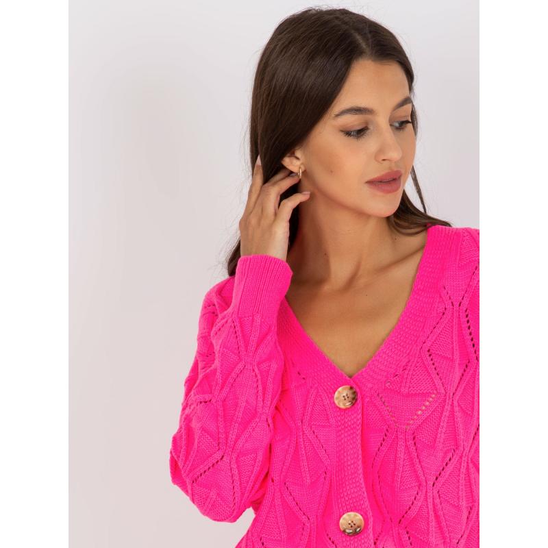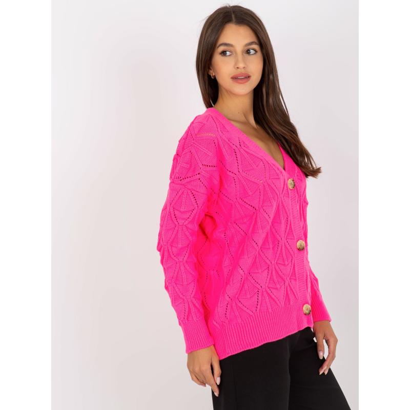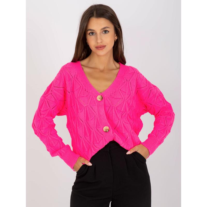 Fluorescenčný ružový prešívaný sveter s gombíkmi RUE PARIS