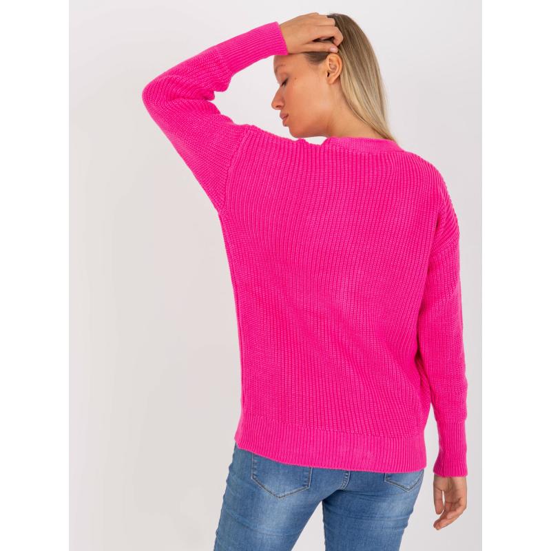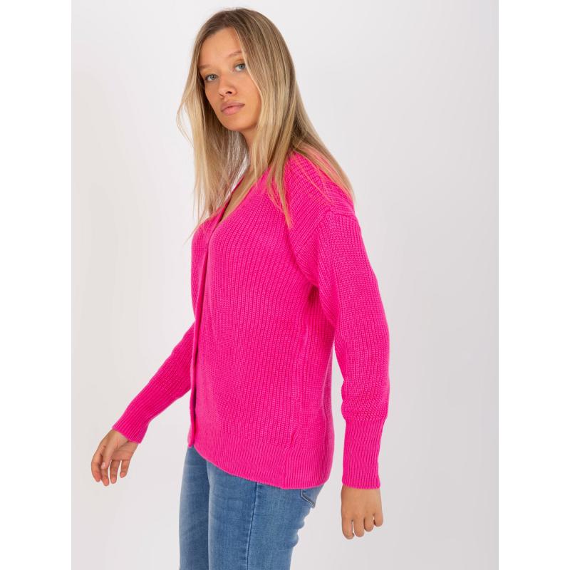 Fluorescenčný ružový sveter s gombíkmi RUE PARIS