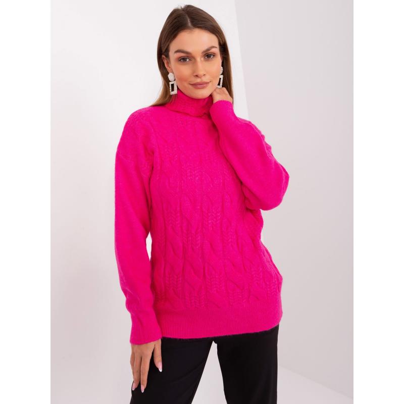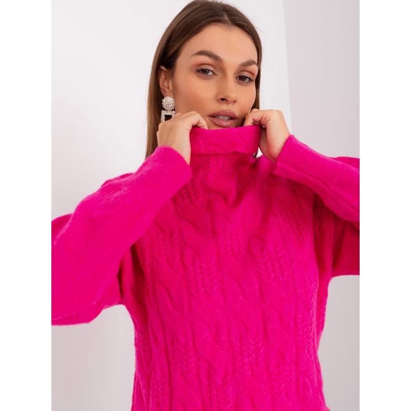 Fuchsiový dámsky sveter vo veľkej veľkosti s voľným rolákom