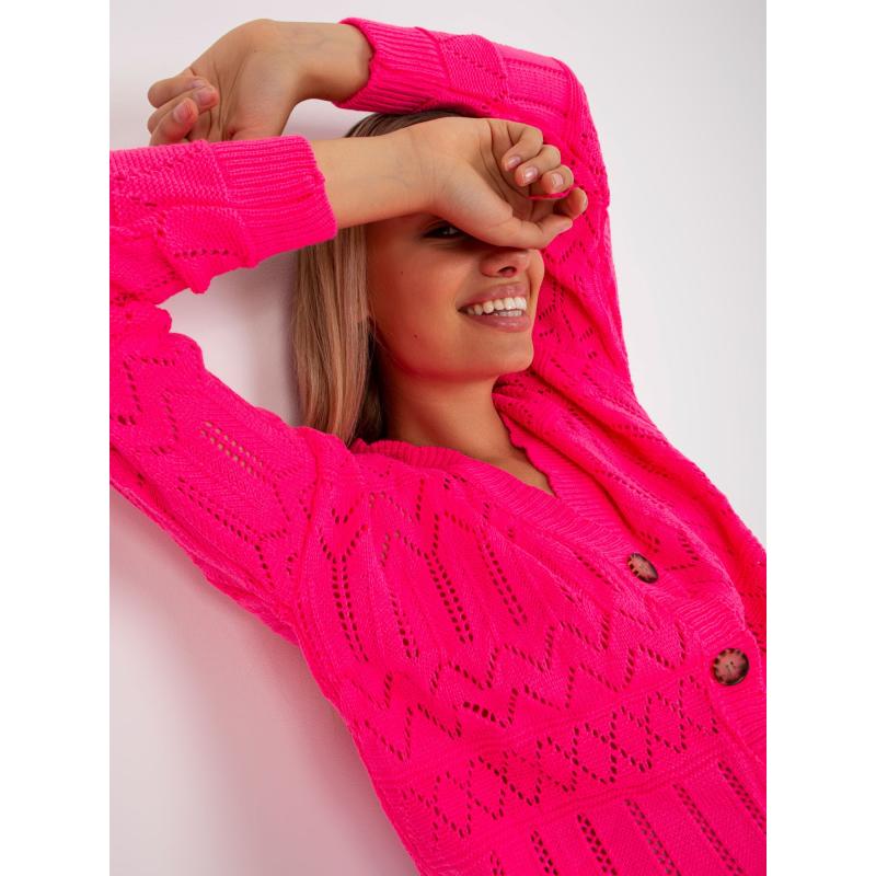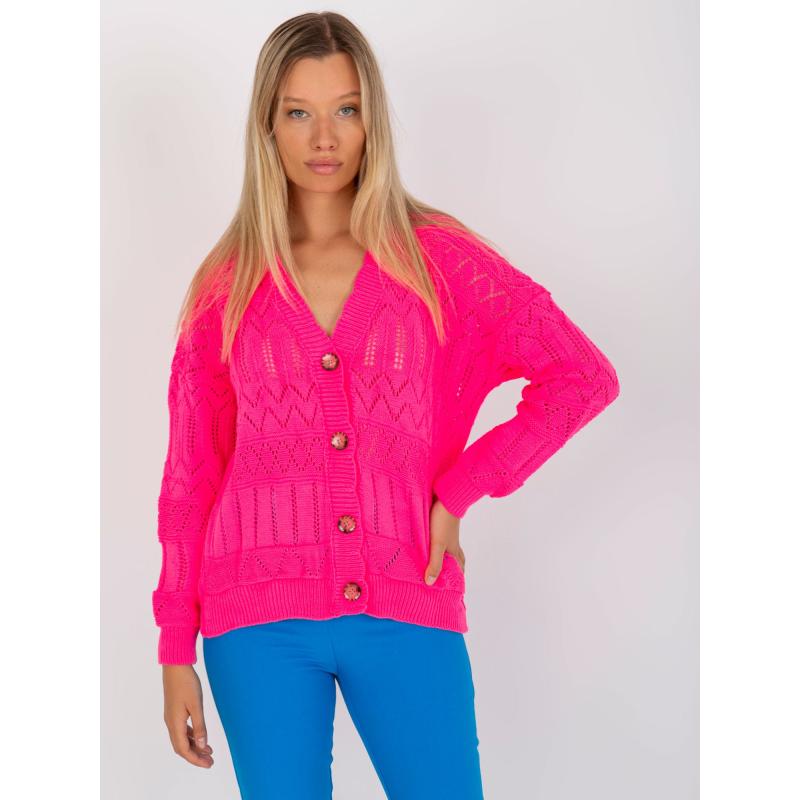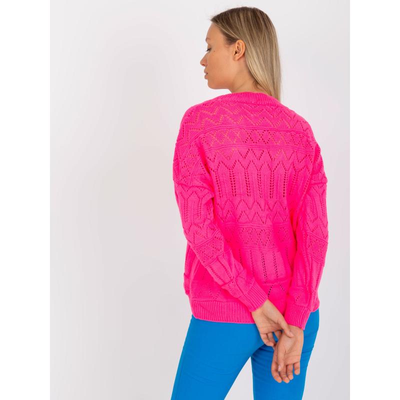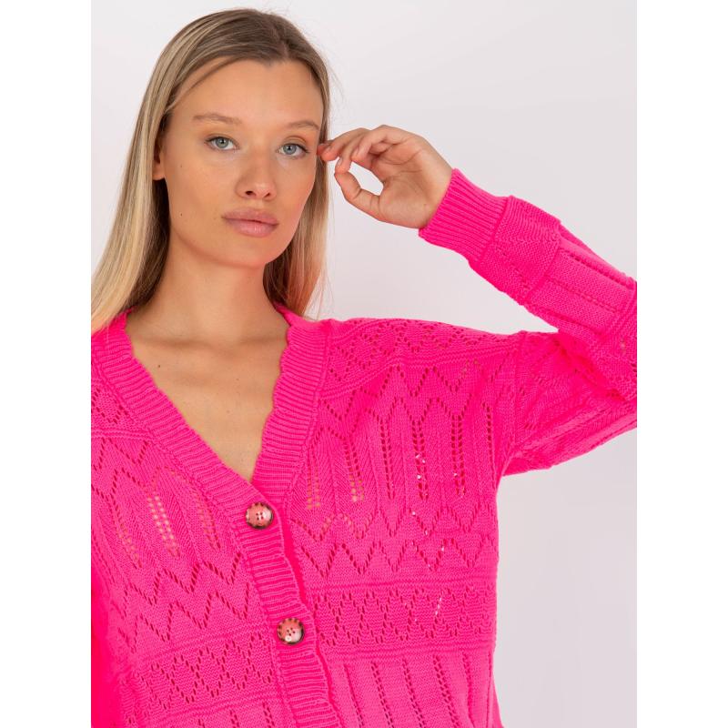 Fuchsiový dlhý sveter vo veľkej veľkosti s výstrihom do V