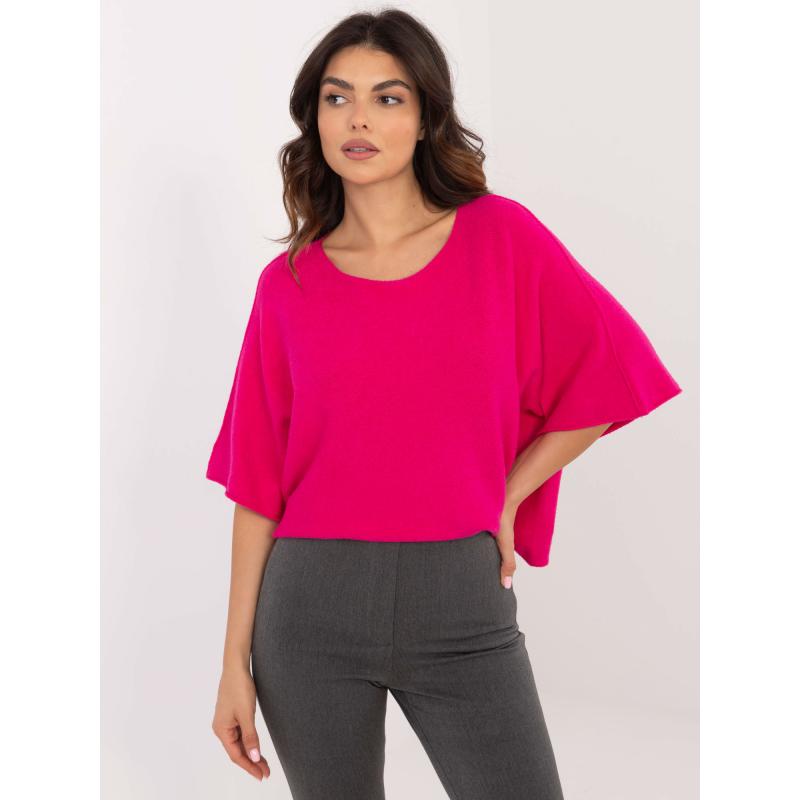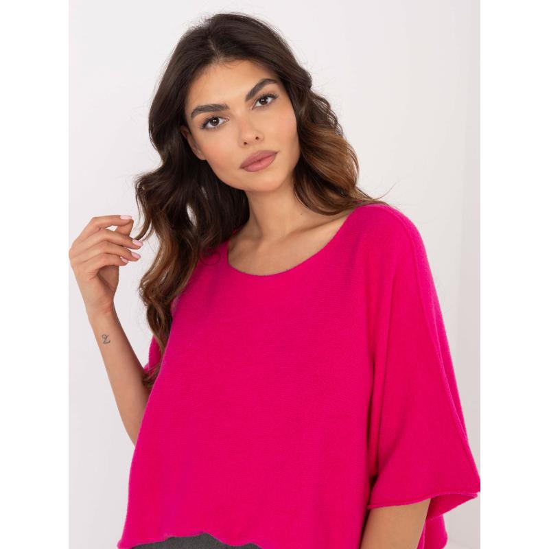 Ružový dámsky sveter s okrúhlym výstrihom