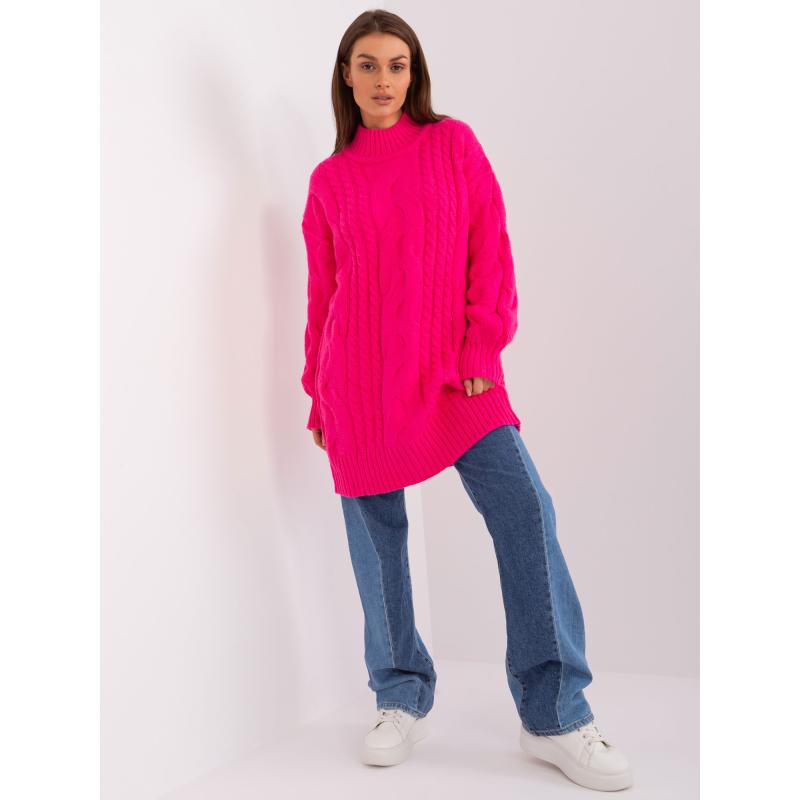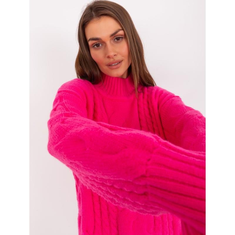 Fuchsiový dámsky sveter vo veľkej veľkosti s voľným rolákom
