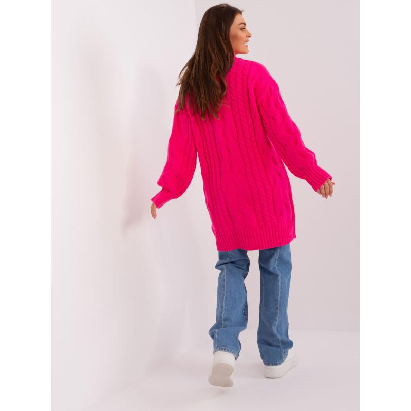 Fuchsiový dámsky kardigán s gombíkmi a pletenými prúžkami