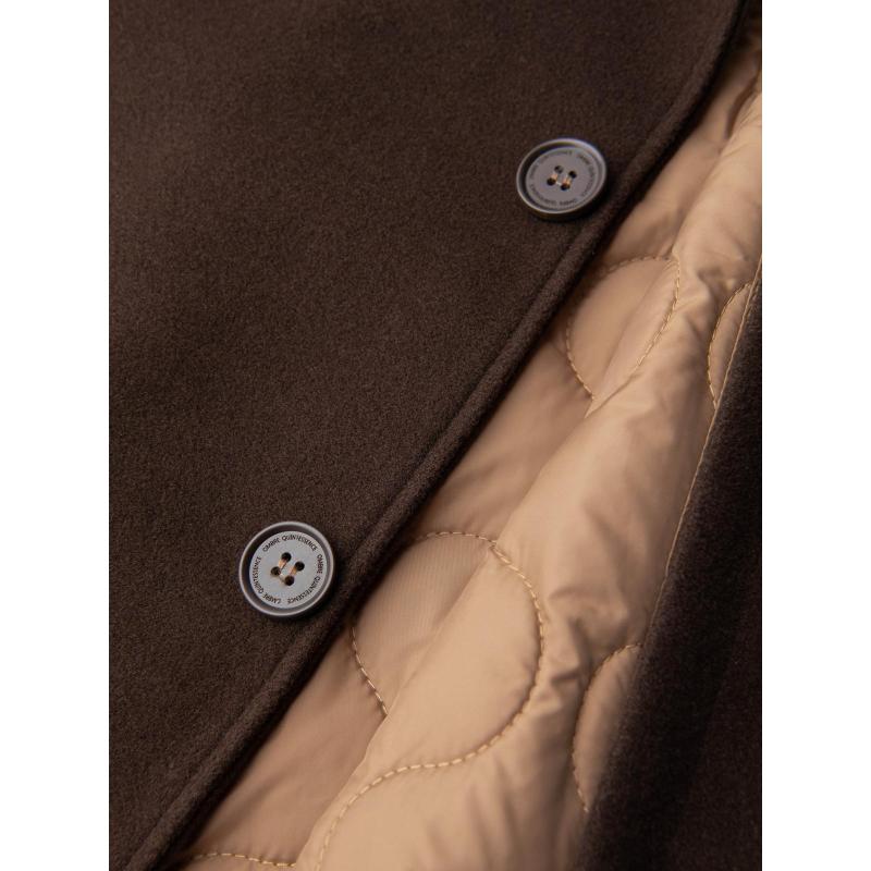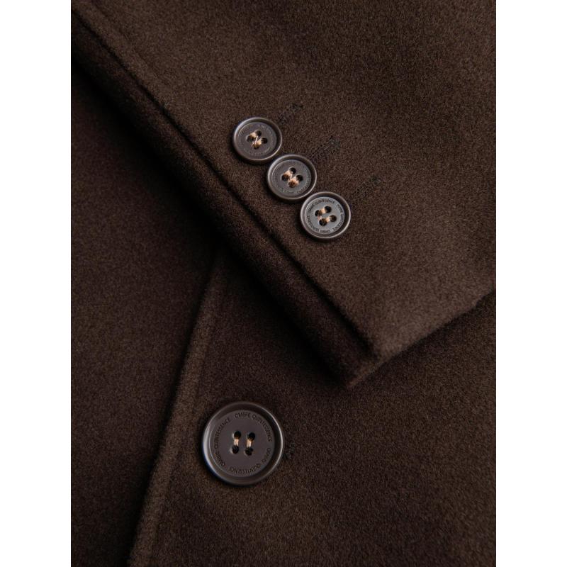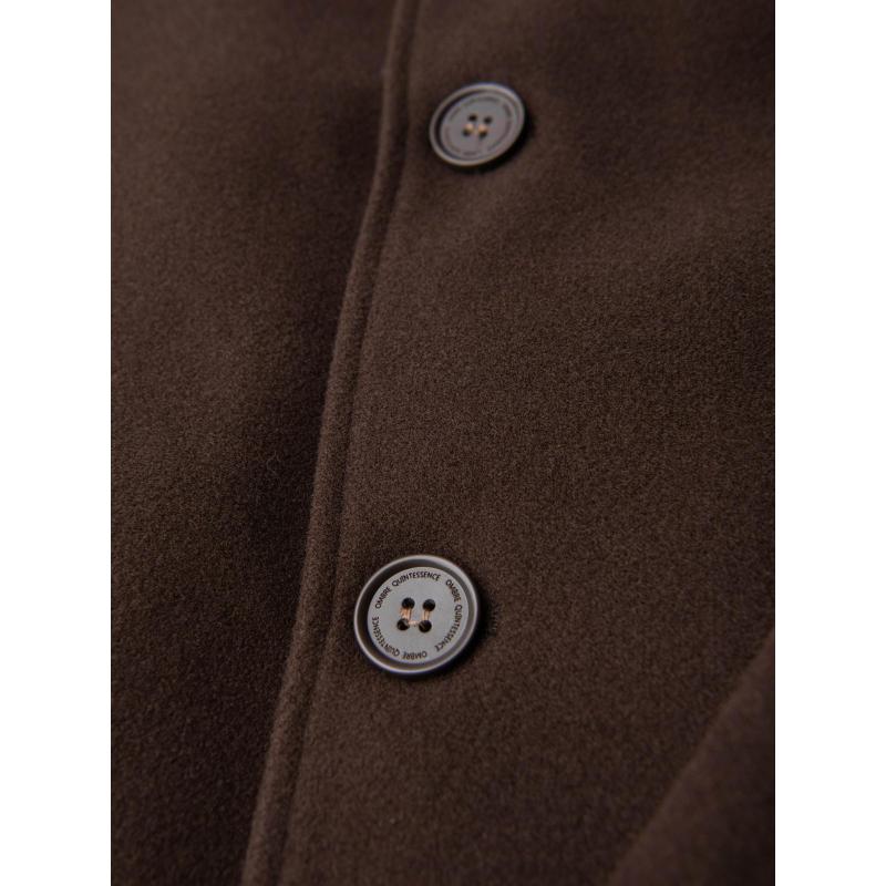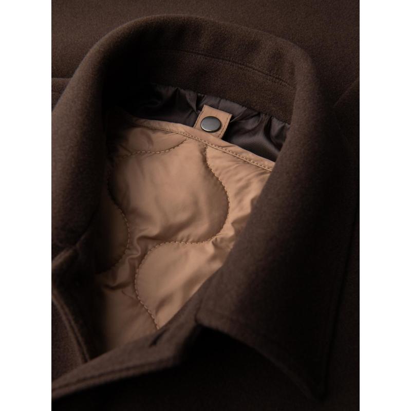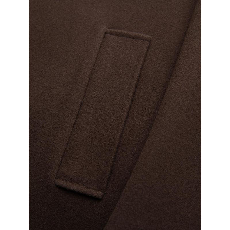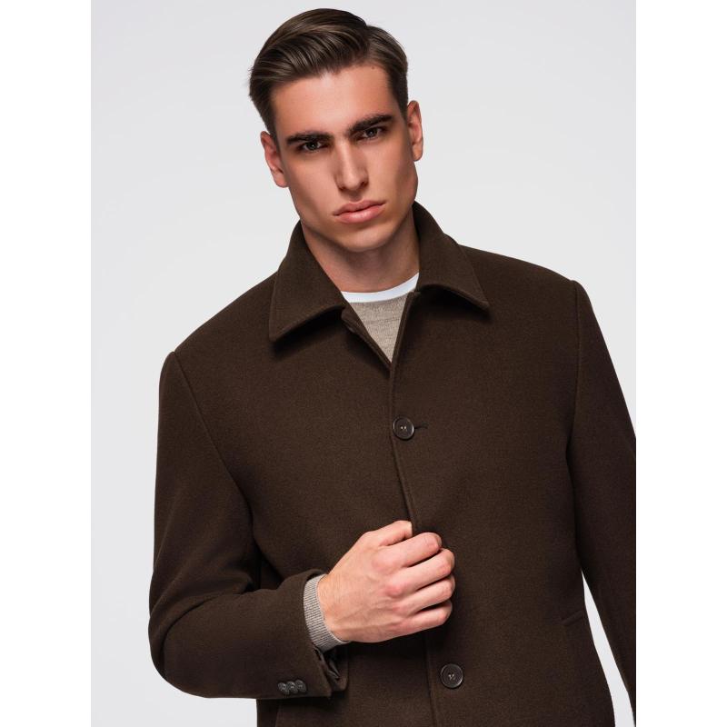 Jednořadový pánsky dlhý kabát s golierom a podšívkou – hnedý V4 OM-COWC-0135