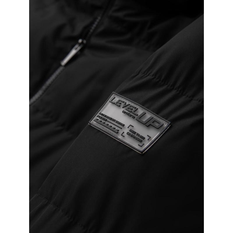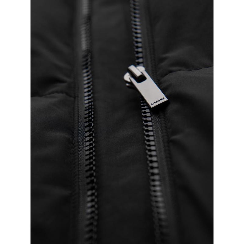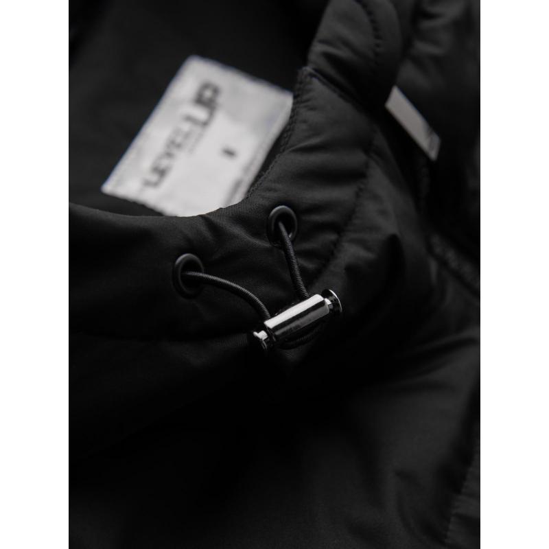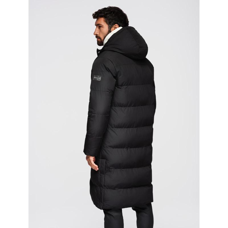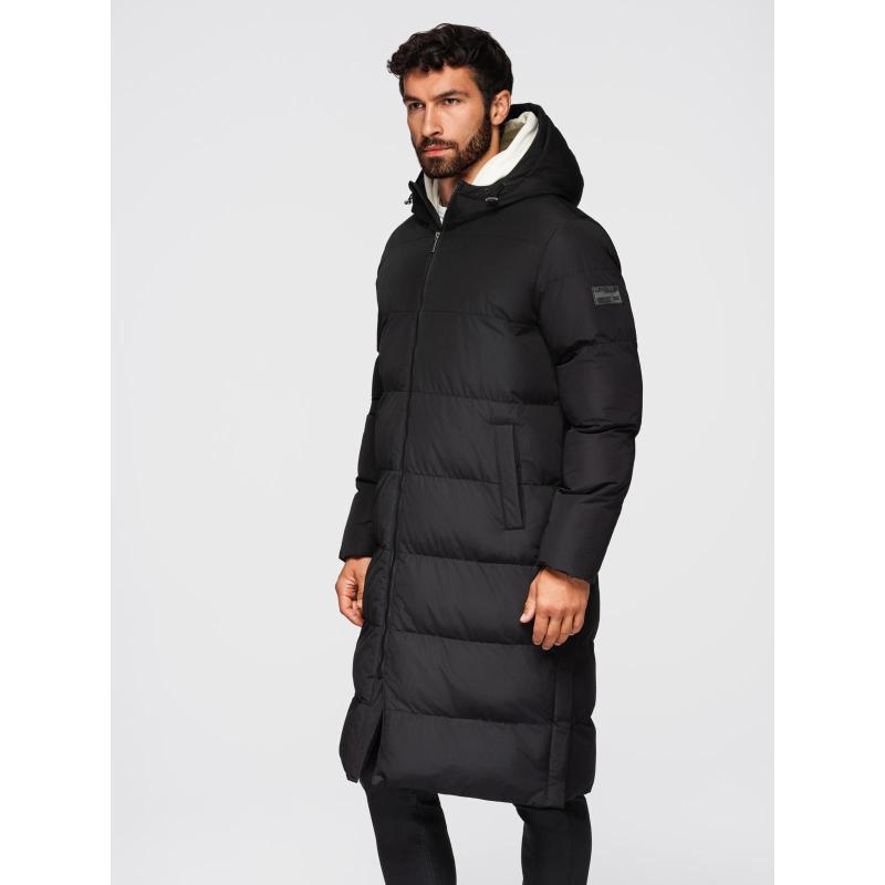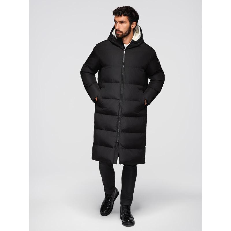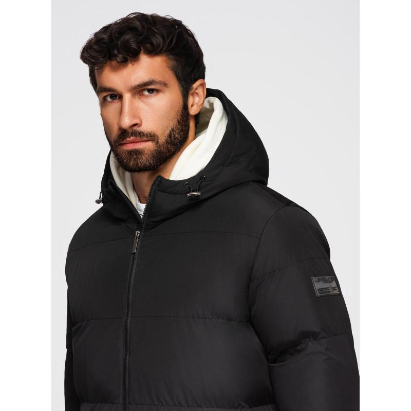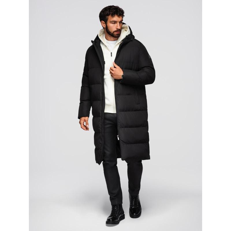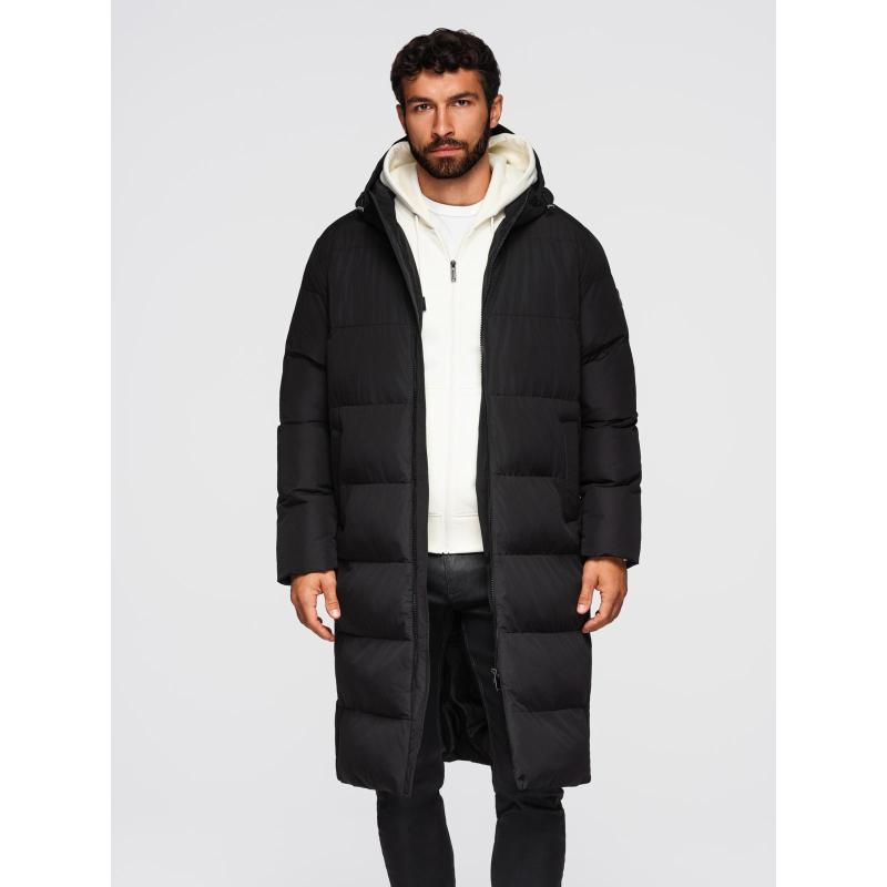 Klasická pánska dlhá bunda s kapucňou – čierna V1 OM-JALJ-0269