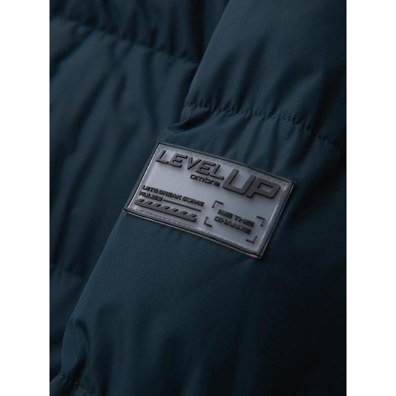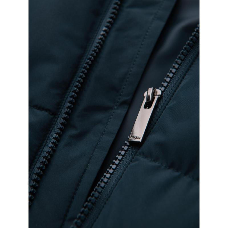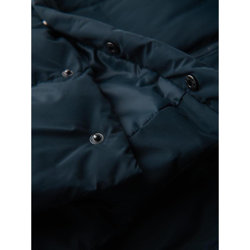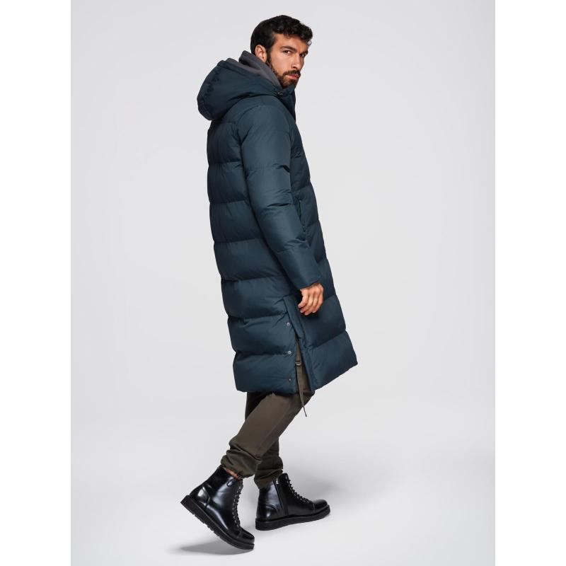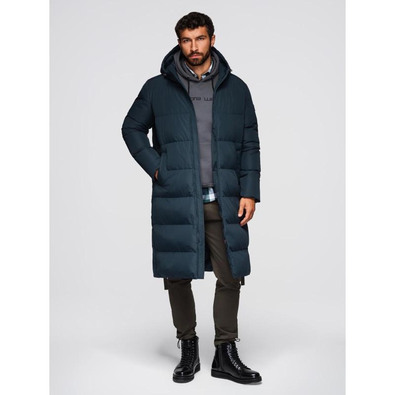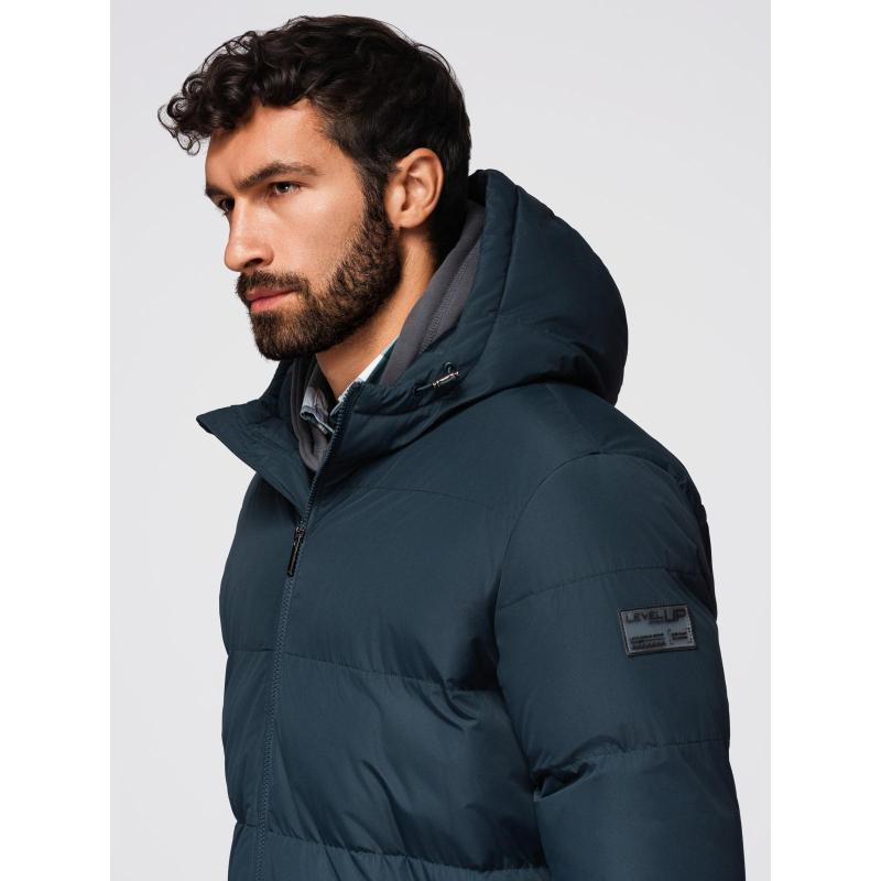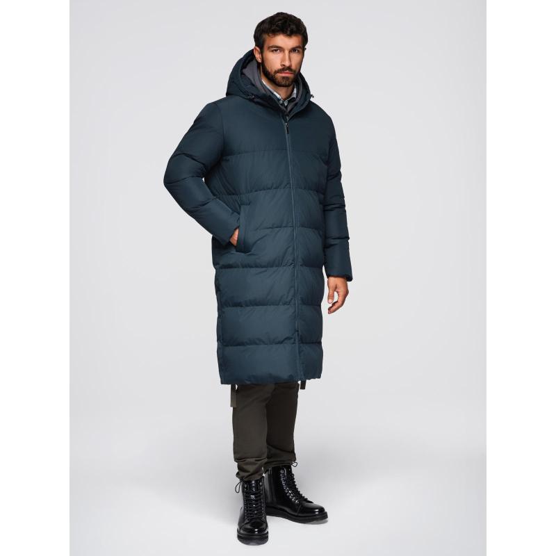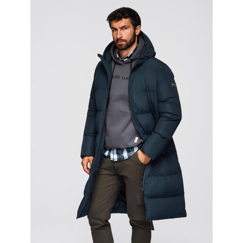 Klasická pánska dlhá bunda s kapucňou – tmavomodrá V2 OM-JALJ-0269