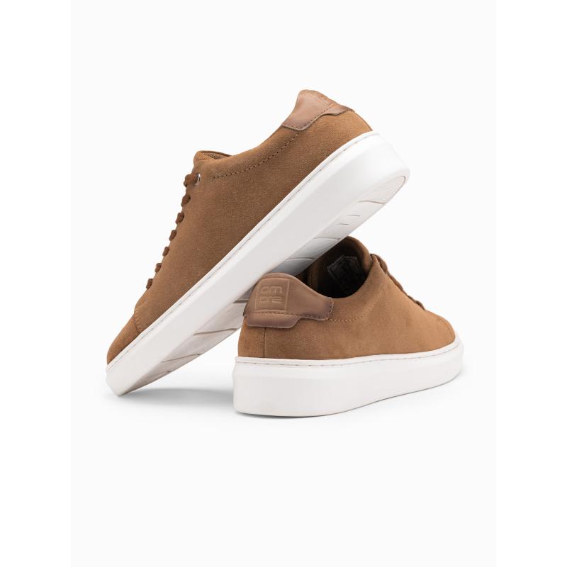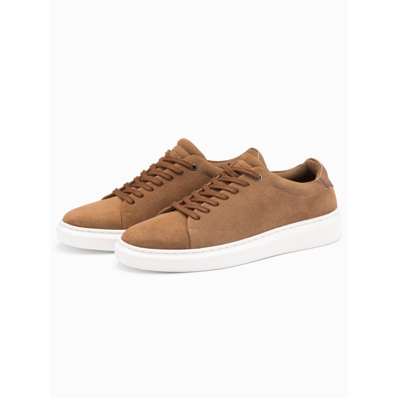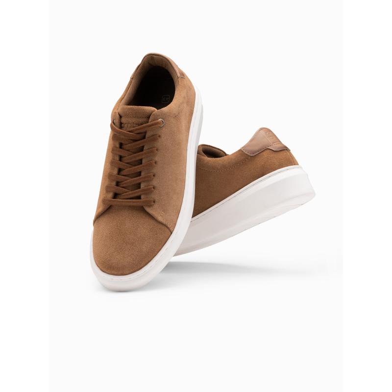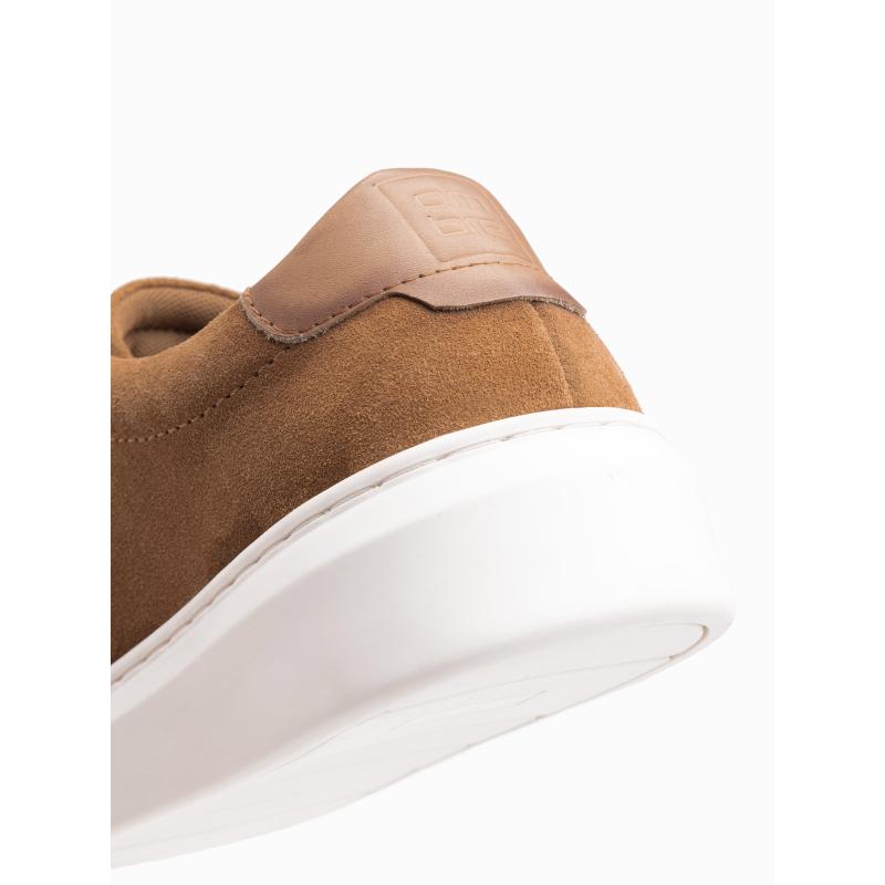 Klasické pánske tenisky z jemnej semišovej kože – svetlohnedé V1 OM-FOCS-0163