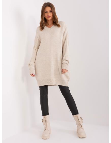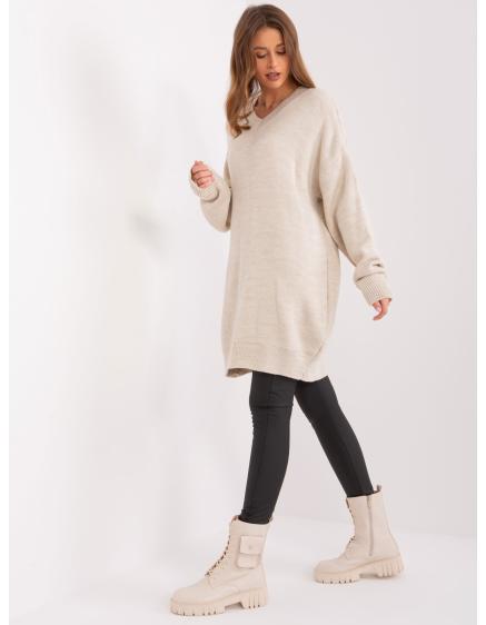 Dámsky sveter dlhý oversize pletený RUE PARIS ecru