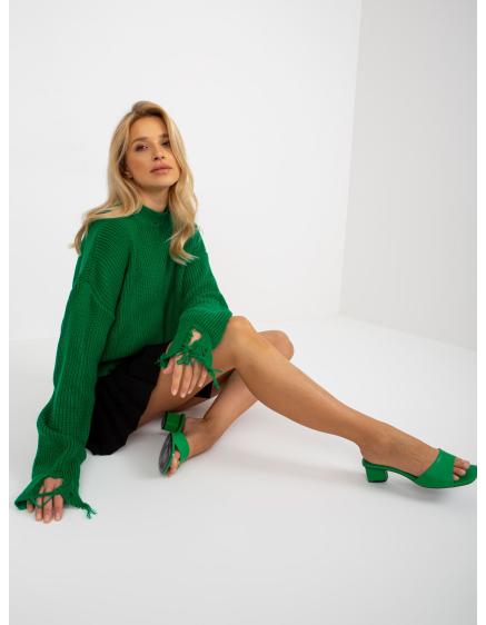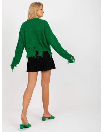 Dámsky sveter oversize s vlnou RUE PARIS tmavo zelený a ecru