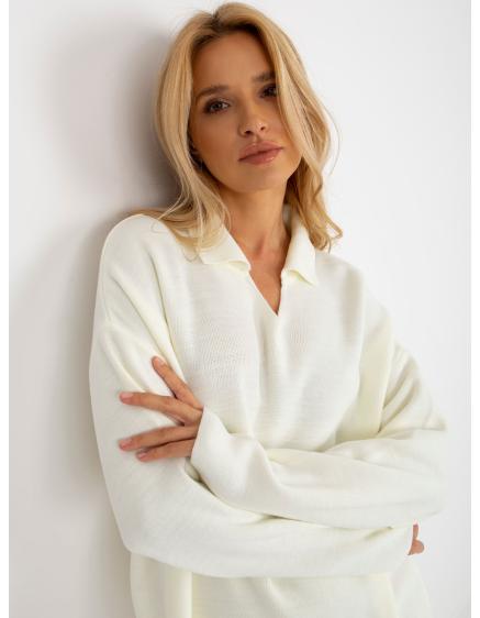 Dámsky sveter s golierom oversize RUE PARIS ecru