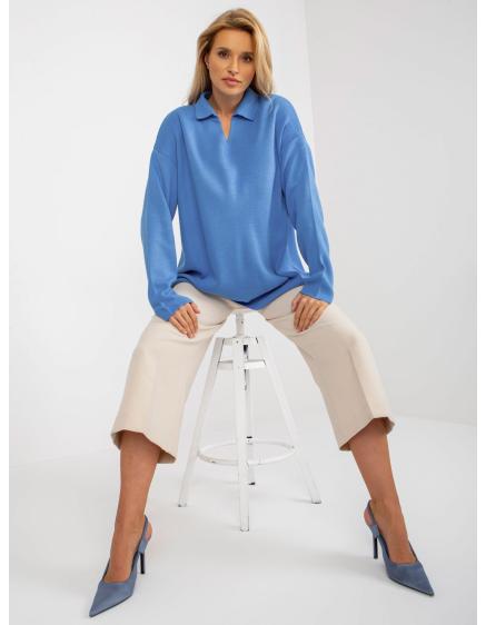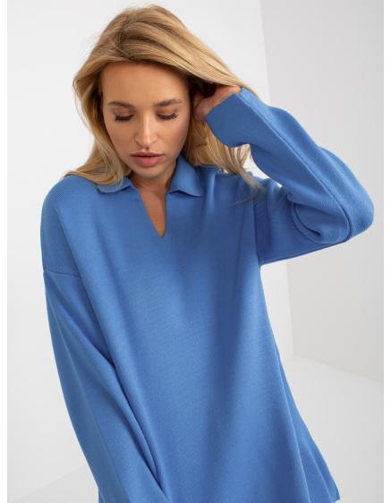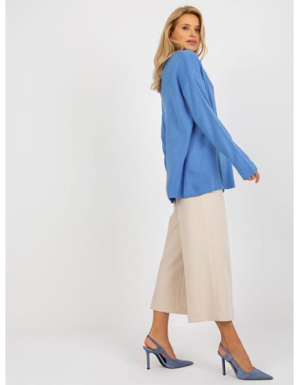 Dámsky sveter s golierom oversize RUE PARIS modrý