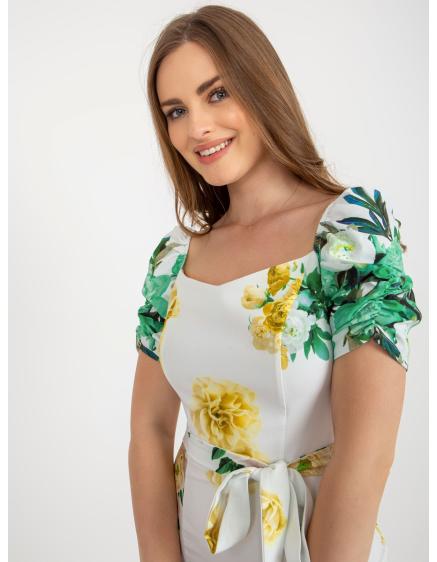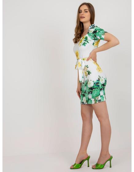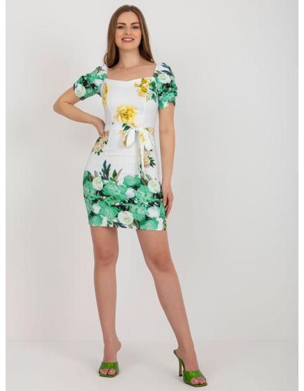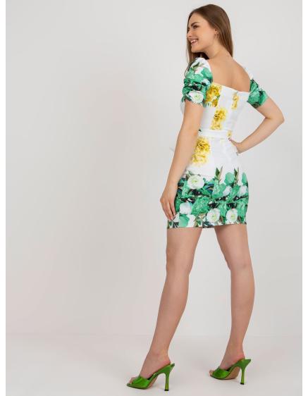 Dámske kvetinové mini koktailové šaty EUGENIA bielo-zelené