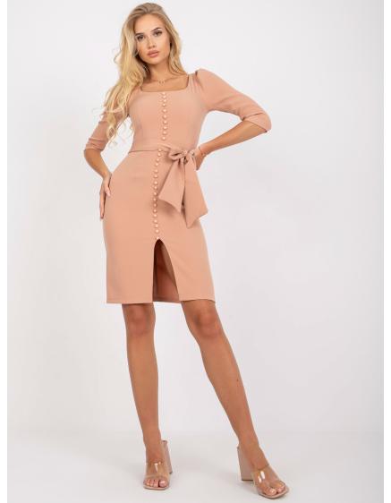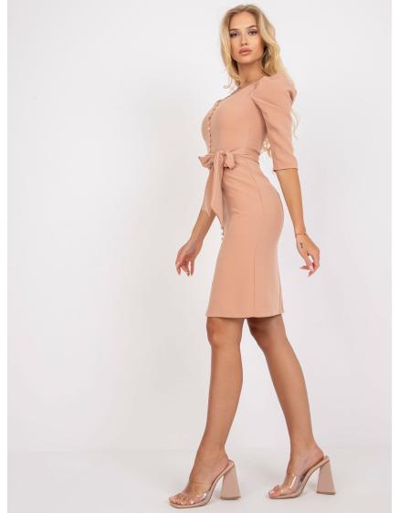 Dámske elegantné koktailové šaty s viazankou ALISHIA béžové