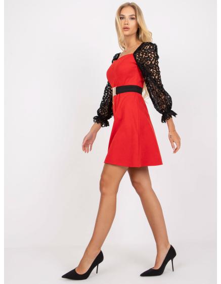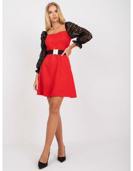 Dámske krátke koktailové šaty s opaskom MARBELLA červená