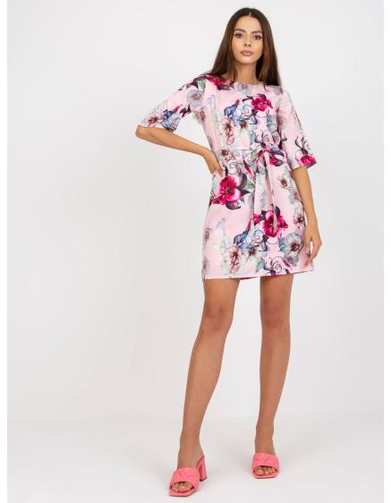 Dámske šaty s volánikom a opaskom mini AMIRAH ružové